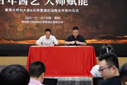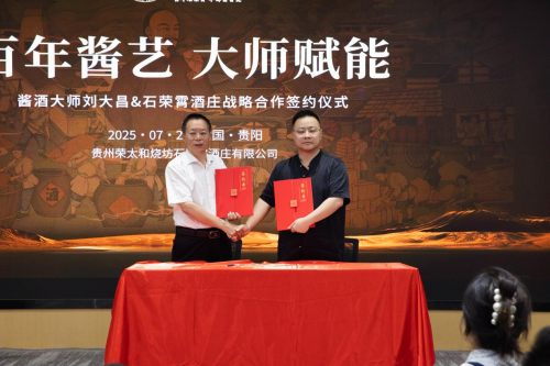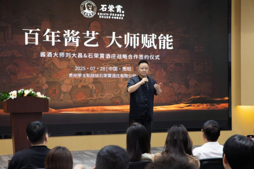 2025年7月28日,酱酒大师刘大昌与石荣霄酒庄战略合作签约仪式在贵州贵阳隆重举行,这标志着石荣霄酒庄正式与酱酒大师刘大昌达成深度战略合作,双方将携手深耕酱香酒体设计与工艺创新,共同书写酱香白酒高质量发展新篇章。