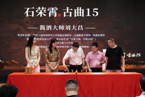 随后,在刘大昌大师的亲自指导下,嘉宾们沉浸式品鉴了石荣霄核心产品——石荣霄酒·岁月老窖、石荣霄酒·古曲15。刘大昌大师以其深厚的专业素养,引导嘉宾细致体验2款佳酿“酱香突出、口感醇厚、幽雅细腻、回味悠长、空杯留香持久”的典型茅系古曲酱香风格,并对石荣霄酒的醇厚品质给予了高度评价。