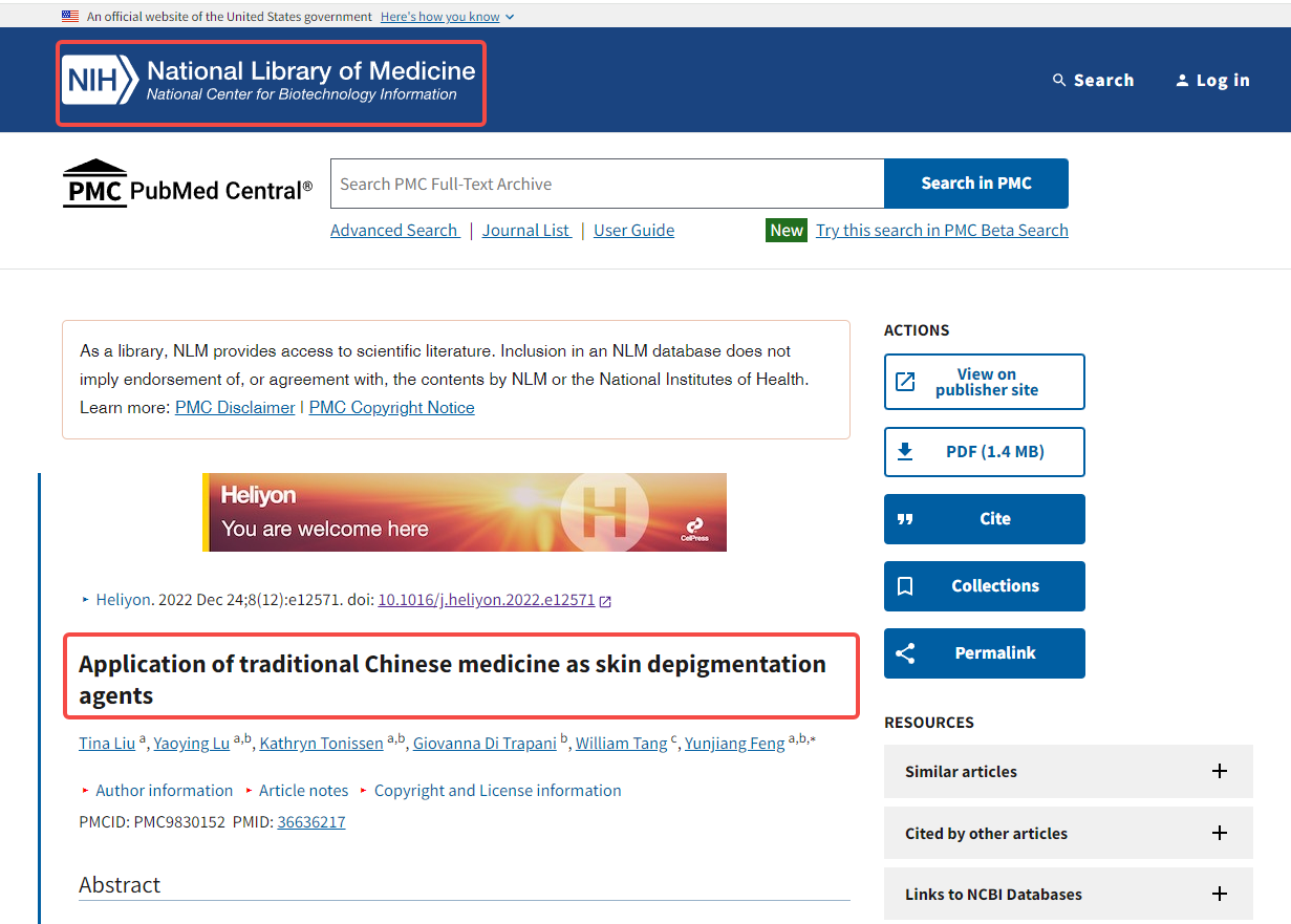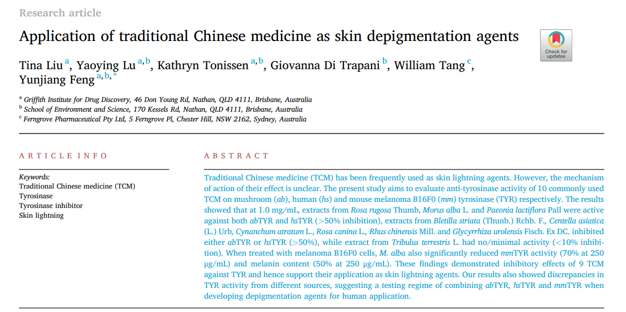 此前便有一项关于传统中药在皮肤美白淡斑领域应用的研究获得国际权威认可,其研究成果被收录于美国国立卫生研究院(NIH)下属的美国国家医学图书馆及其核心数据库PubMed,作为推动全球相关科研的重要参考。该研究由澳大利亚格里菲斯大学药物发现研究所、环境与科学学院,联合澳药集团共同完成,为传统中药的现代化应用提供了科学依据。