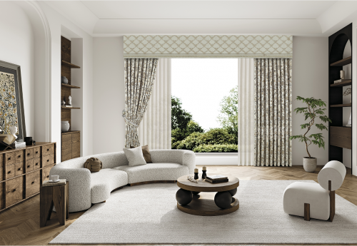 花开富贵系列以美式花卉元素,将西方宫廷美学织入帘间,搭配精致巧思的立边工艺,展现出一种既古典又不失浪漫的气息,窗帘随风轻舞间,仿佛在诉说着浪漫的诗篇。