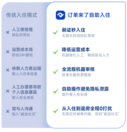 订单来了「自助入住」核心优势:智能、高效、降本、无忧