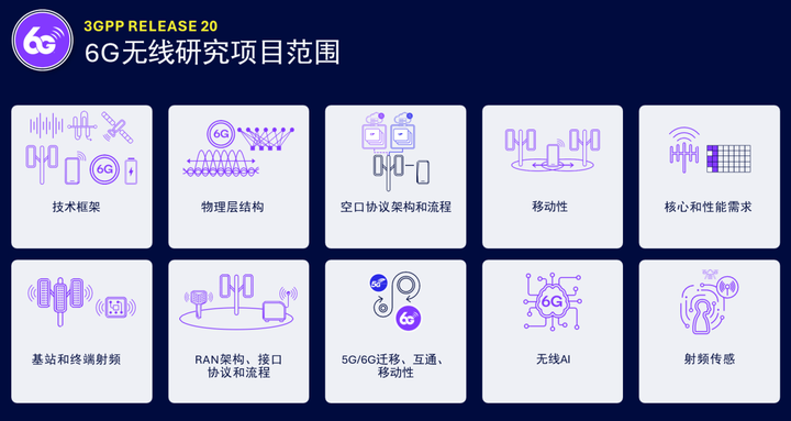 除此之外,Rel-20的6GR研究范围还涵盖无线接口架构、端到端射频设计、无线AI、射频感知等,从多个方面为未来6G标准奠定基础。