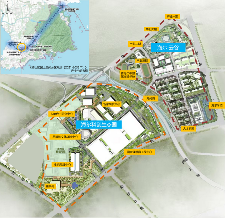 ▲“海尔·云谷”与“海尔科创园”区位示意图(以政府实际规划为准)