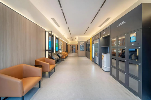 丽怡酒店与锦江都城酒店采用双前台岛台设计,配备鹿马酒店自助入住机,预留60厘米通道便于人员直接互动;7天酒店智选版则实现全自助入住,人工服务后台化,大堂集成咖啡机、智能外卖柜等多功能组合柜,机器人自主取送物品,满足宾客多元需求。科技赋能下,服务从“被动等待”转向“主动响应”,体验升级驱动复购率显著提升。