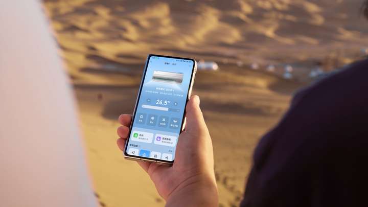 踏入沙漠深处,手机信号变得时有时无。从远处观察发现,TCL小蓝翼新风驿站正伫立在这片“信号荒漠”里。TCL空调全球产品经营中心副总经理曹姚松介绍,TCL小蓝翼C7新风空调拥有AI语音功能,搭载伏羲语音大模型,内置100万+词条,融合了DeepSeek大模型,无论是在线还是离线状态,都能实现自由对话。