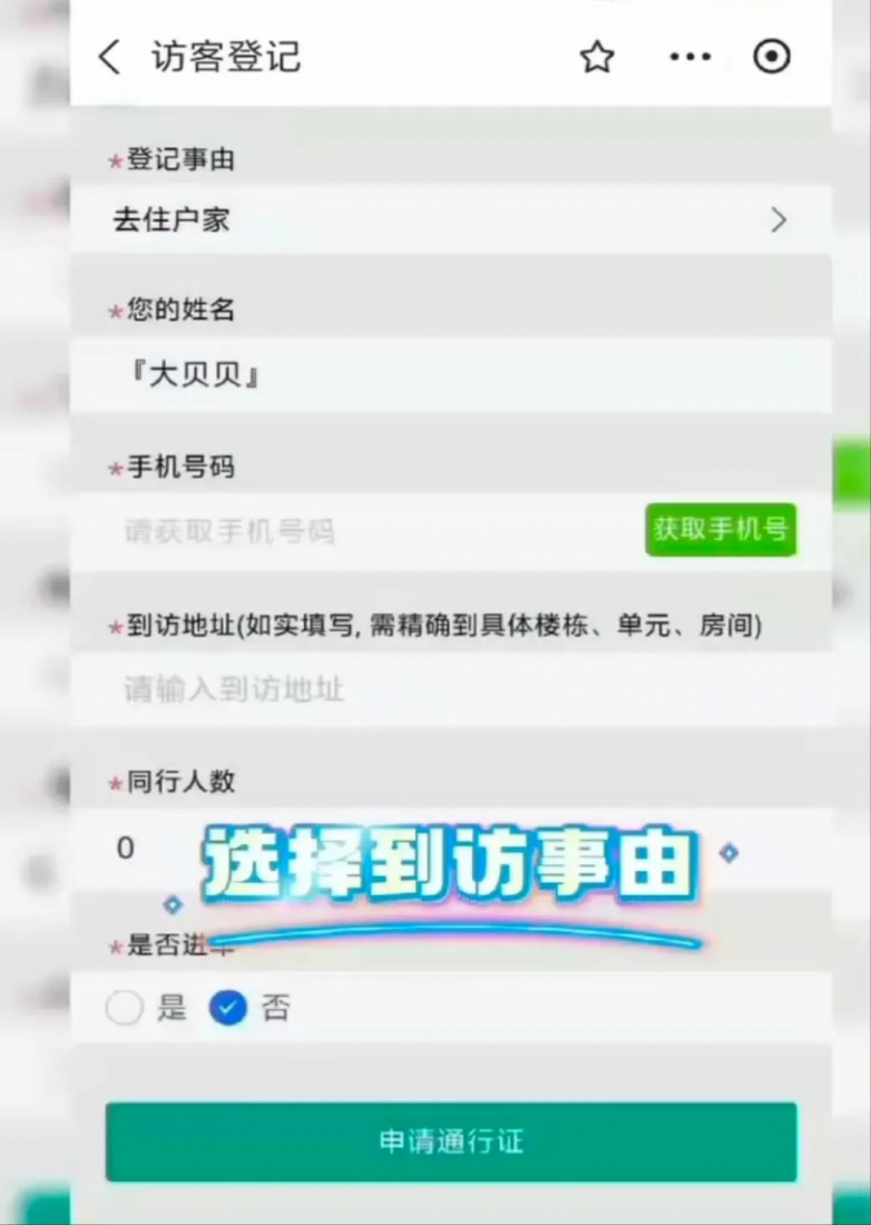 自动识别信息、仅需填写事由及到访地址