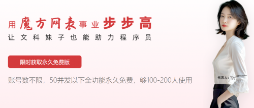 功能的迭代升级只是魔方网表的特色之一,更令企业信息的是,它居然推出了“0元使用(限前1000家企业)”的政策利好。在使用魔方网表过程中,可实现50并发,同时在线操作毫无压力,而且涵盖模板设计、工作流引擎、权限控制、移动端适配等永久免费的核心功能,没有隐形收费与功能陷阱,彻底打破“免费即套路”的偏见。