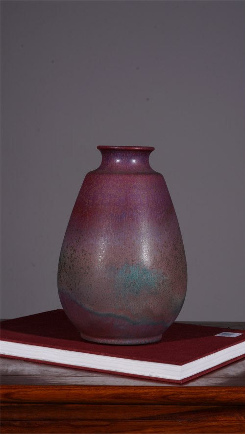 技艺正宗,匠心独运:梁青杨先生完整掌握并复原了(清代鸡窝窑炭烧)这一传统核心技艺,并在此基础上进行优化实践。其作品釉色纯正,尤以自然窑变形成的朱砂红、玫瑰紫著称,釉面结晶天成,每一件皆为独一无二的孤品,充分体现了钧瓷“入窑一色,出窑万彩”的艺术魅力。