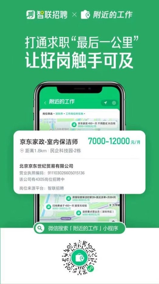 “打开微信,搜‘附近的工作’小程序,搜索岗位名称或添加求职意向,进行岗位筛选、距离排序,就能看到由智联招聘推送的优质岗位”——这样的场景化求职体验,正随着双方的技术融合成为现实。