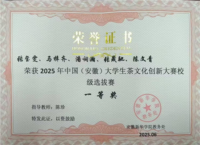 航空学生,参加2025年中国(安徽)大学生茶文化创新大赛,获得校级比赛一等奖!恭喜!