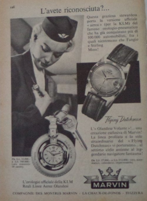 1955年,Marvin正式成为KLM皇家航空指定合作品牌,为机组人员打造专属飞行时计。Flying Dutchman系列与“轮胎表”共同成为摩纹在1950年代的象征之作,亦在瑞士制表史上留下浓墨重彩的一笔。