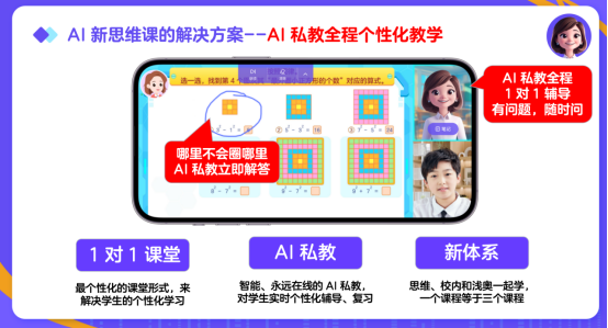 教学理念上,课程创新采用 “AI 名师教 AI” 模式,以 AI 名师可可老师为核心,依托国内外先进的 AI 大模型(如 DeepSeek、豆包、OpenAI 等),结合伴鱼 3000 万 + 节课、7000 万 + 用户的学习数据训练的基础大模型,并根据名师团队教学理念和新课标要求进行微调复刻,打造出沉浸式的 AI 学习环境,让学习效果事半功倍。
