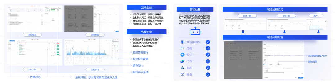 「AWS BAM业务活动监控」支持自定义监控规则,并基于规则实时监控流程运行,并提供智能告警机制,同时能够支持自动化处理。