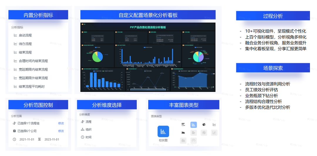 「AWS BPA业务流程绩效分析」 能够从业务系统中抽取业务系统的流程实例数据,内置27+指标、10+图表样式,进行场景化分析结果的呈现,帮助企业洞察流程运行效率,支撑多维流程评估和决策。
