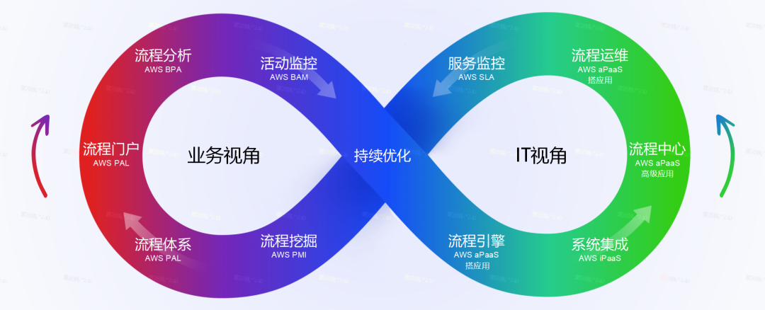 AWS bpmPaaS将AI技术与流程管理全生命周期深度融合,将AI嵌入组织和流程,覆盖从建模、执行到监控、优化的各环节,使流程从“被动适应”升级为“主动进化”,为企业打造具有前瞻性与竞争力的流程体系。