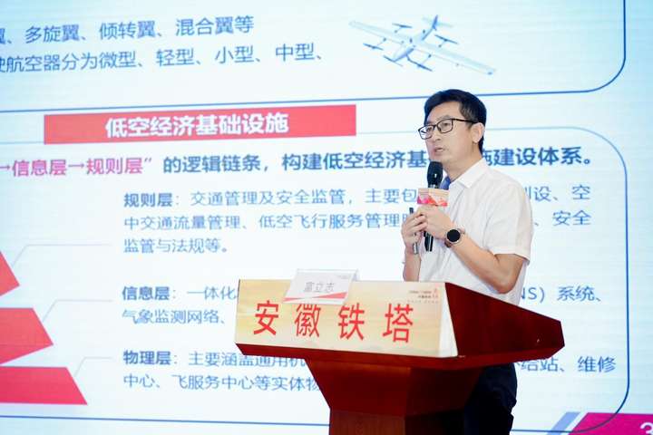 为提升对新兴产业的认知与实践能力,大会特别邀请江苏通服低空经济研究院院长、南京市低空经济标委会委员富立志,带来《低空新经济:趋势、政策与布局分析》专题培训。富院长凭借深耕低空经济领域的经验,解读行业发展趋势、政策导向与布局策略,结合安徽地域特点分析数字经济与实体经济融合的新机遇,为安徽铁塔布局低空经济、抢占新兴赛道提供专业指导,为区域业务拓展打开新思路。