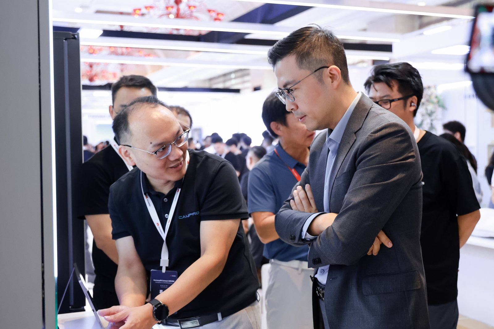 (图| 华为终端BG OEM生态产品领域总经理杨海松参观佳普乐展区)