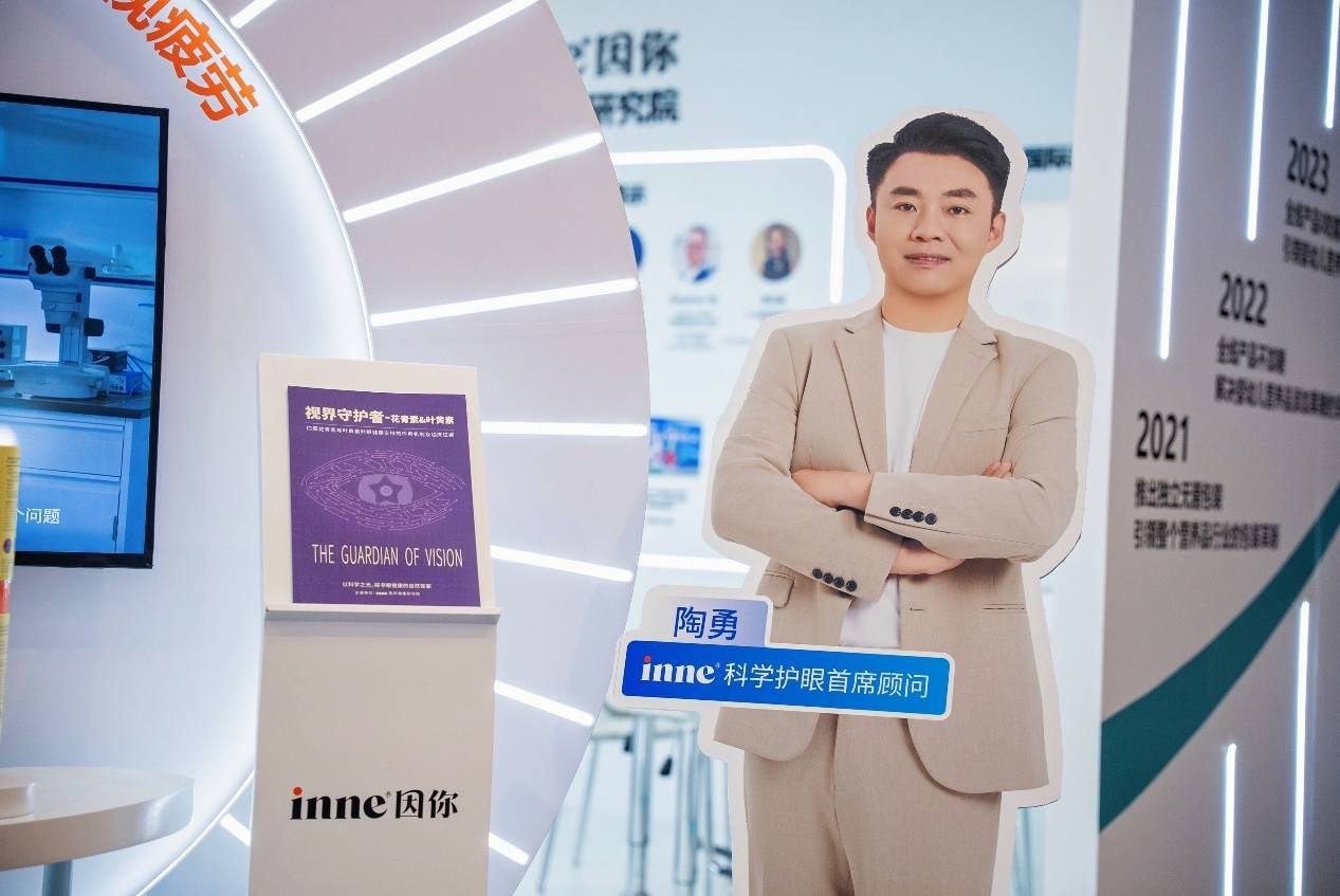 陶勇教授担任inne因你“科学护眼首席顾问”,图为现场立牌