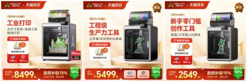 更多产品优惠及限时礼赠具体规则请登录天猫、京东、抖音等官方电商平台咨询客服或关注“创想三维CREALITY”微信公众号了解更多活动详情。