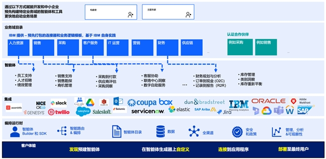 · 除了现有的人力资源、采购和销售等预构建的业务域智能体,IBM还将发布财务和供应链等新的预构建智能体,协助企业更高效、更专业地应对常见业务挑战。