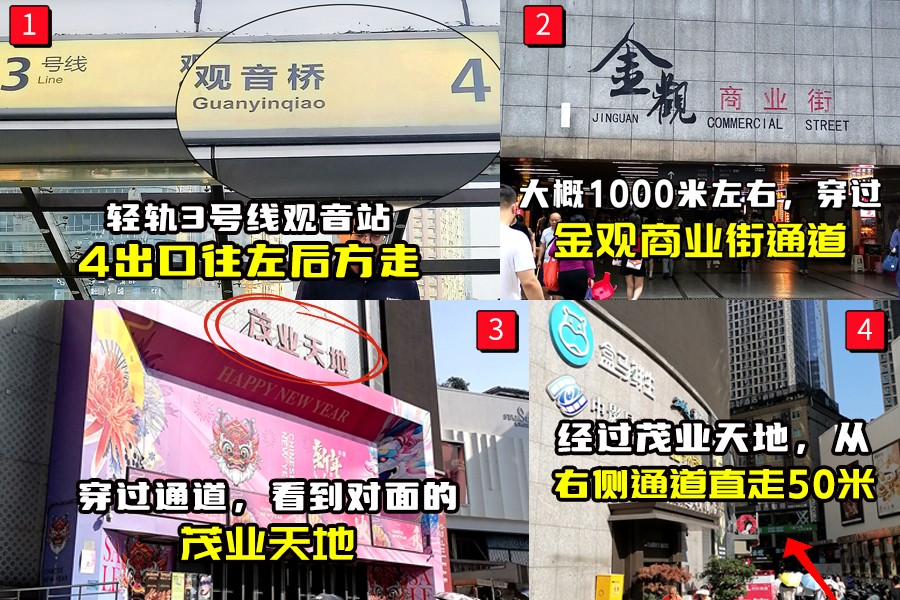 交通:轻轨3号线观音桥站4号出口直达