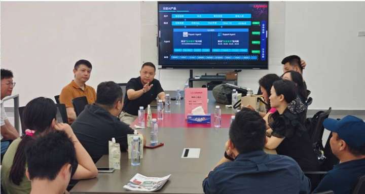 在展厅参观结束后,媒体团和元征代表共同参与了交流座谈会。会上, “AI智能维修大模型”成为热议焦点。作为技术代表,产品经理安海月先生以“元征AI——重构汽修服务新生态”为主题,分享了公司对于AI技术的发展蓝图。与此同时,蒋总进一步展示了即将上市的元征新品 “AI OBD”。