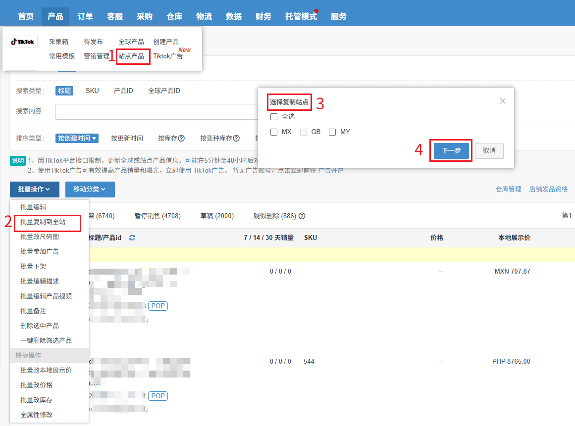【在线产品】支持“批量复制”到全站点,商品listing、销量、评价一键同步到位,高效实现跨国铺品。