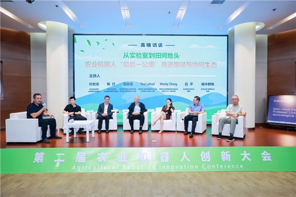 会议最后进入高端访谈环节,由叶宏宝所长担任主持,访谈围绕“从实验室到田间地头:农业机器人‘最后一公里’推进路径与协同生态”主题,邀请杭州市农业农村局农业机械化与数字化处副处长梅开、浙江农林大学农业工程/机械工程学科负责人兼党支部书记倪忠进、以色列机器人创新中心主席Yosi Lahad、国际机器人组织联盟投资委员会副主席Wendy Cheng、浙江道济农业科技公司董事长吕平、浙江凤山奶牛养殖有限公司总经理端木群帆6位资深行业专家,聚焦于如何打通技术研发、产品商业化及规模化落地应用的核心堵点,围绕成本控制、场景适配、可靠性验证及用户接受度等现实挑战,展开了务实且富有建设性的探讨,为加速国际农业机器人技术落地、真正服务于农业生产一线凝聚了前沿智慧与可行性方案,同时也呼吁更多的国内外科研机构与企业携手合作,共同突破“最后一公里”的现实挑战。