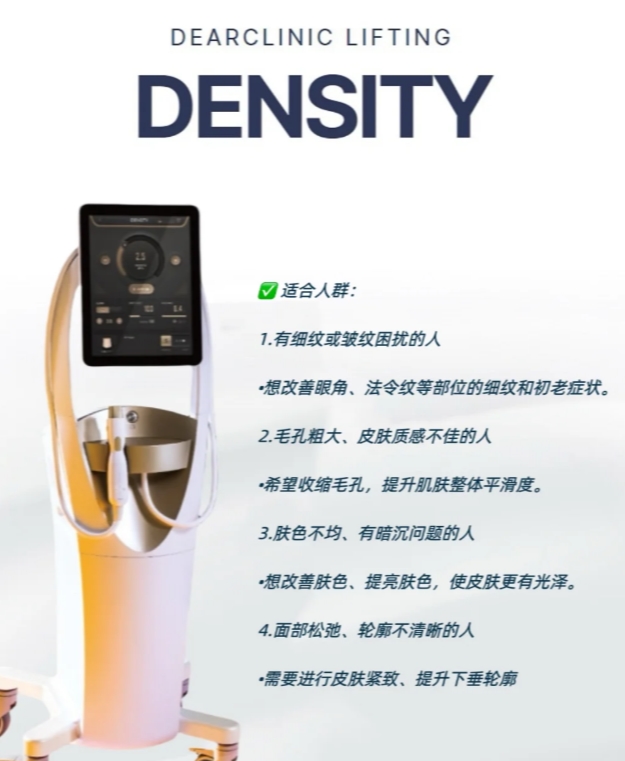 在安全性与个性化治疗层面,“Density Lifting” 设备充分体现了韩国医美设备的技术优势。设备配备的阻抗反馈系统,可实时监测治疗部位的皮肤状态,精准捕捉不同肤质的阻抗数值,并依据监测数据自动调整能量输出参数,确保能量始终均匀作用于目标区域,从根本上避免因能量不均引发的皮肤不适。此外,设备创新采用气体喷射式冷却技术,设置 5 段冷却等级与灵活可调的冷却时间,能够针对干性、油性、敏感性等不同肤质提供定制化安全保护,让各类肤质的消费者都能在舒适的治疗体验中,享受专属的韩式皮肤管理服务。