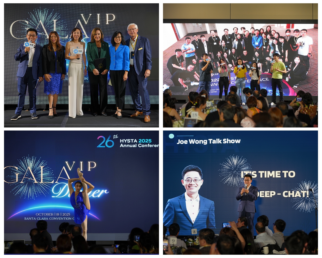 晚宴伊始,嘉宾陆续入场交流。加州财务长 Fiona Ma、萨拉托加市议员 Yan Zhao、东亚银行创新及跨境业务总监 Angie Zeng 等贵宾也应邀出席并致辞,向HYSTA二十六年来的卓越贡献致以高度肯定。当晚的节目内容精彩纷呈,包括:由 Find A Cappella 带来的无伴奏合唱、以及 硅谷舞蹈学院 的艺术表演,为科技盛会增添艺术之光。随后播放了HYSTA志愿者团队制作的年度短片《Together We Rise》,通过真实影像记录志愿者的奉献与成长,赢得了现场阵阵掌声。著名脱口秀艺术家 Joe Wong(黄西) 带来了长达半小时的 Talkshow 表演,以其标志性的冷幽默与深刻洞察,引发全场阵阵笑声与共鸣。成为本届年会最难忘的篇章之一。
