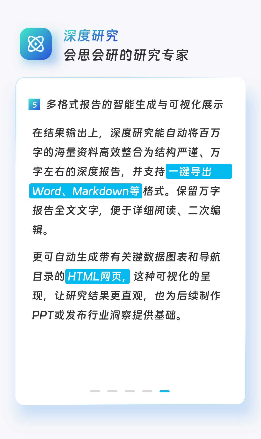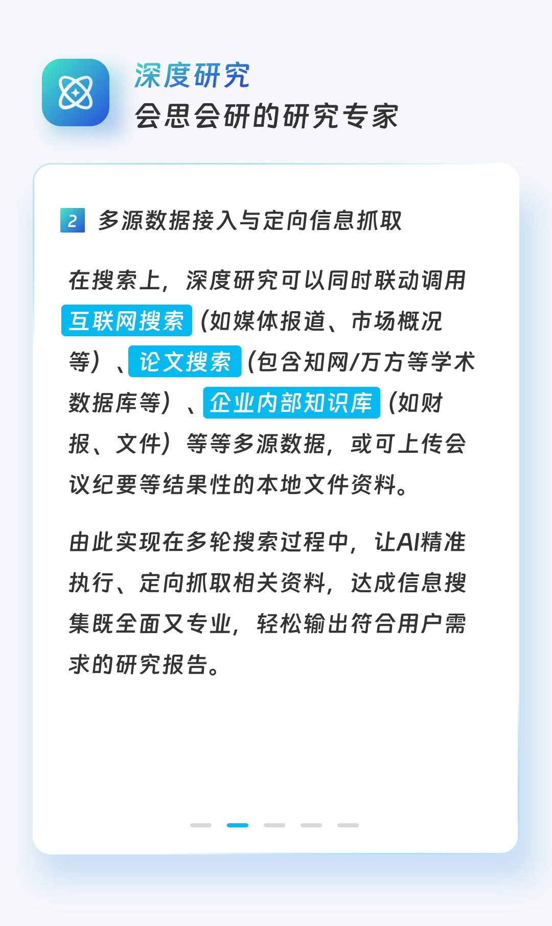 当我们的Attention从日常事务中释放出来后,便能投向更重要的决策研究。个知·智能工作站的深度研究将个人Attention的价值放大到极致,它像一个随时待命的专家团队,接管了海量信息搜索与分析,让使用者能够专注于深度学习与研究本身。