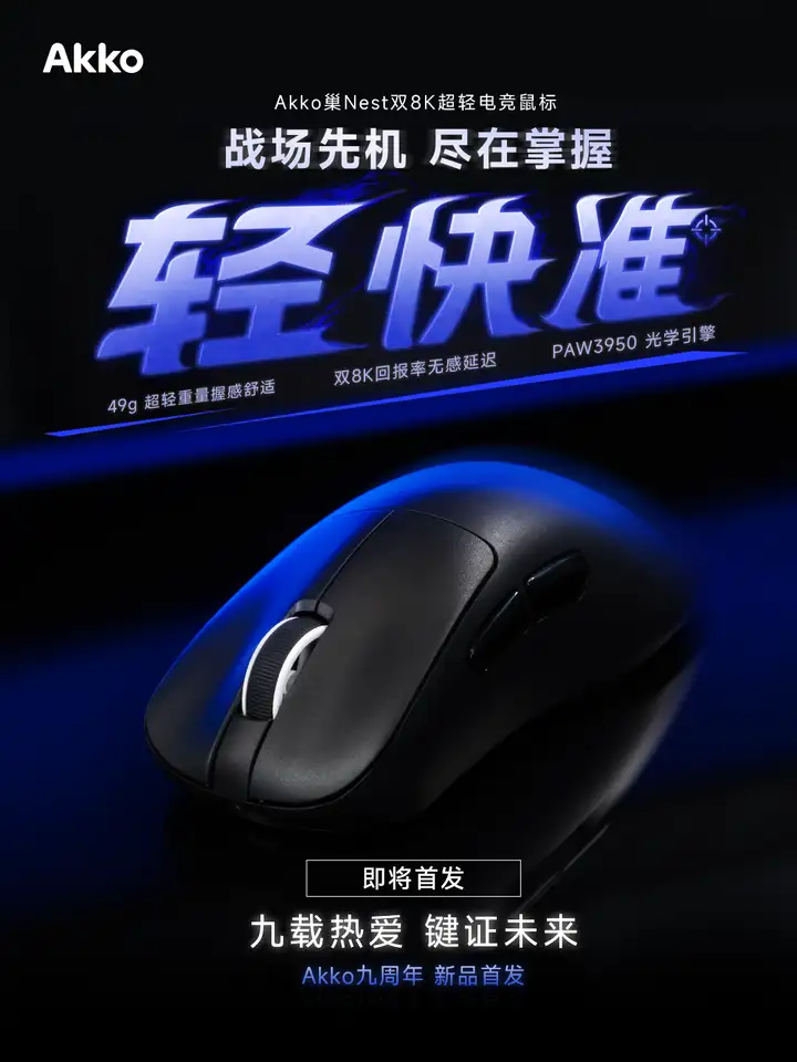 游戏打久了手腕发酸,鼠标太重操控变形?手跟不上反应,鼠标有延迟?瞄头总不够精准,就像“枪管会拐弯”?Akko 巢 Nest 电竞鼠标偏要把这三大顽疾一举攻克,争取让每一次移动、点击都帮你把 “差一点” 变成 “拿下”。正值Akko九周年之际,推出又一全新力作:Akko 巢 Nest——三模电竞鼠标,超轻量化、PAW3950光学引擎、Nordic主控芯片,助你决胜电竞战场,11月3日20:00即将正式首发。
