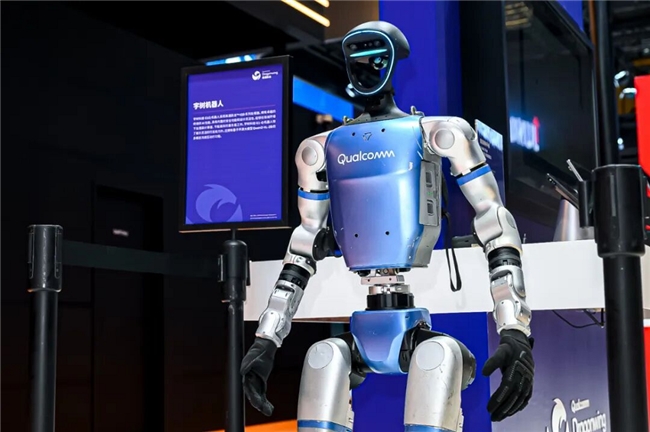 在物联网方面,高通展示了机器人、飞行相机、智能商用平板等创新产品及解决方案。如在互联网上极为火热的宇树人形机器人,也在高通展台亮相。