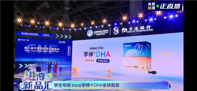 11月8日,在第八届中国国际进口博览会与央视新闻联合打造的《进博新品汇》新媒体直播节目现场,德国高端儿童营养品牌inne(中文名:因你)旗下战略新品——inne学神®DHA正式完成全国直播首秀。