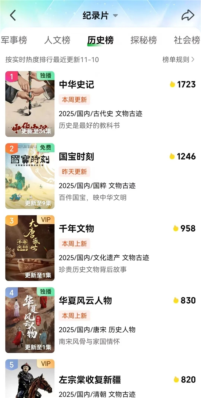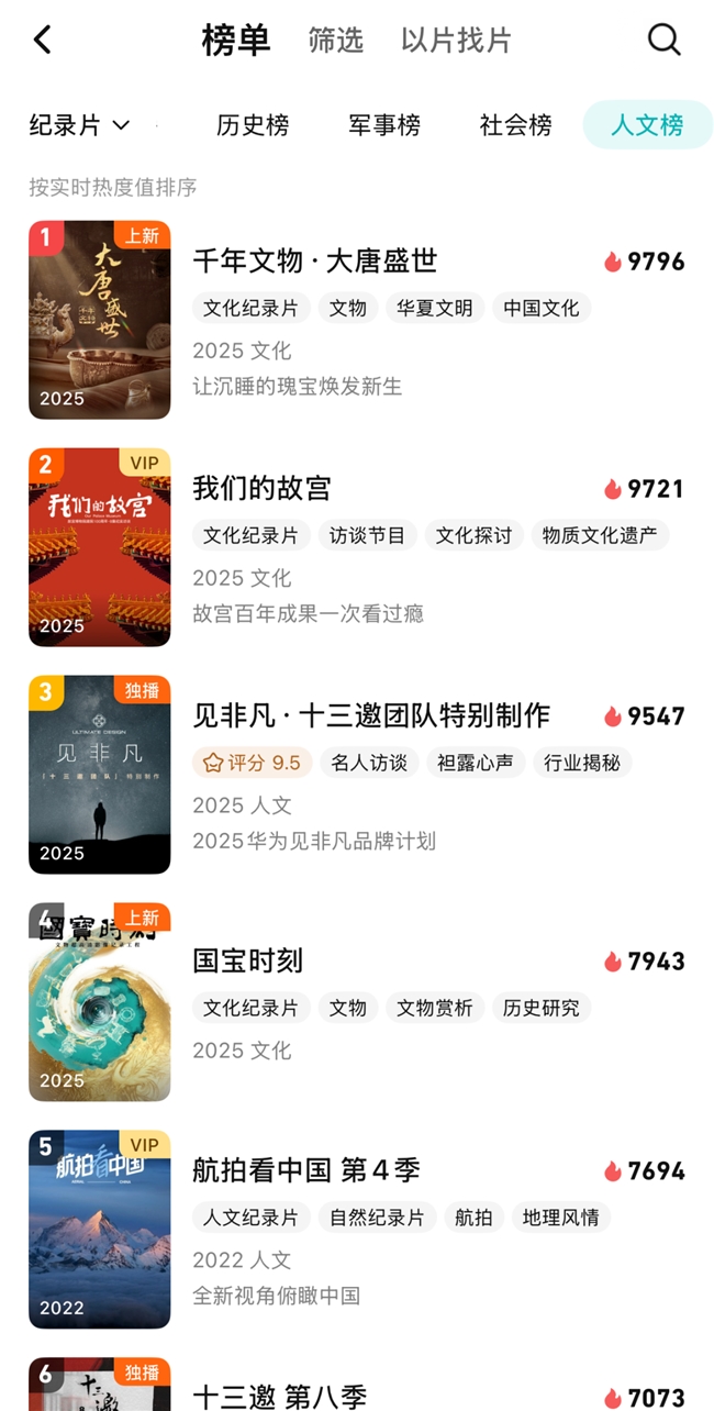 腾讯视频纪录片人文榜第一、爱奇艺纪录片历史榜第三口碑持续升温
