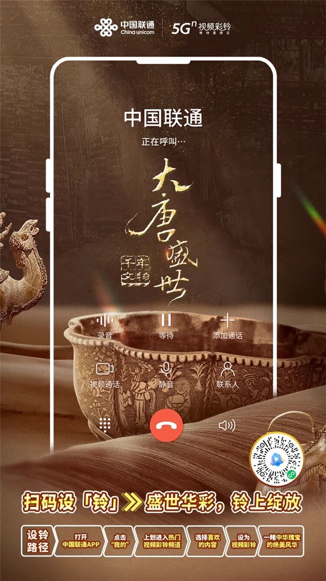 此外,联通沃音乐还同步推出了“大唐盛世·千年文物”视频彩铃,以3D视觉形式生动呈现珍贵文物的细节。每次来电时,中国联通将跨越千年的盛唐风华传递给全国超过2.25亿的用户,搭建起一座跨越古今的文化桥梁。