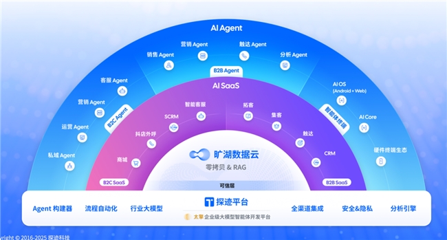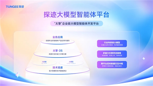 当前企业面临人力成本持续承压、传统工具难破效率瓶颈等问题,对高效生产力工具的需求愈发迫切。探迹科技依托自主研发的“太擎”平台与“旷湖”底座两大技术基座,打造专注于数字生产力的大模型智能体平台,为企业提供具备实际应用价值的AI数字员工。