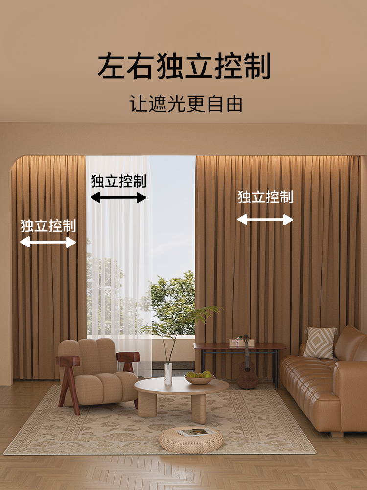 科思顿2025年发布全球首款D9独立分控窗帘电机,实现一根轨道左右独立分控,让遮光更自由!