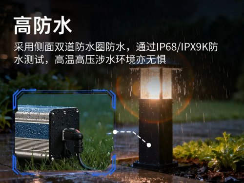 能够抵御雨水浸泡、沿海湿气、喷泉水景以及市政高压冲洗,确保电气连接不渗水、不短路。