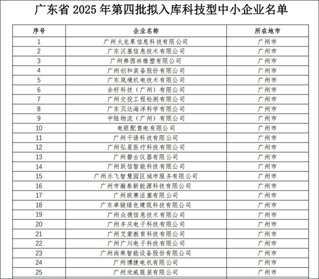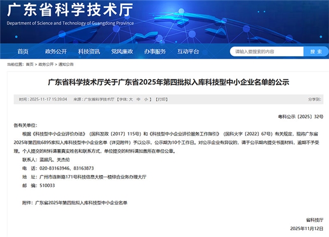 2025年11月17日,广东省科学技术厅发布了关于广东省2025年第四批拟入库科技型中小企业名单的公示,在企业名单上,广州阿隆索智能科技有限公司赫然上榜。