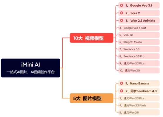 同时在imini上还接入了其他热门生图和做视频的模型,如nanobanana、sora2、veo3.1等等,一键切换即可使用,不在需要频繁的切换工具使用了。