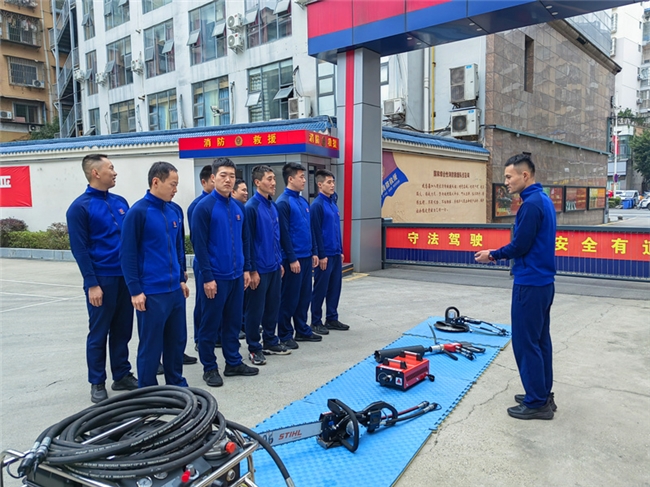 首先,站长助理通过讲解演示和实地操作的方式,对液压破拆工具组的性能、操作方法、日常维护保养、安全注意事项等进行详细地讲解及现场操作,并耐心为队员们答疑解惑。讲解完毕后,队站队员进行了实际操作,虚心求教,不断加深对装备器材的熟悉了解,掌握正确的使用方法。操作完毕后,站长助理对液压破拆工具组的性能参数进行了提问和讲评总结,提出了训练存在的问题以及要改进的地方,使每一位消防救援人员对液压破拆工具组都能够熟练操作及维护保养。