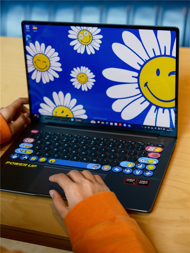 与全球潮流IP SmileyWorld的联名更是点睛之笔。随机附赠的专属笑脸贴纸,其圆润设计与波点键盘形成巧妙呼应,鼓励用户在机身 A 面、C 面自由 DIY,让笔记本成为可随心情切换的 “情绪看板”。这一设计不仅增强了Hi MateBook 14的独特性与可玩性,更让它成为年轻人在社交平台分享审美、引发共鸣的“潮流符号”。 极夜灰与晨曦金两款低饱和度配色,搭配涟漪微曲金属机身,呈现出柔和高级的质感。1.32kg的重量与14.5mm的厚度,使其能轻松适配通勤、咖啡馆办公、校园学习等多种场景,成为名副其实的"随身时尚配饰"。