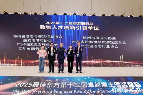 颁奖典礼上,海南省酒店与餐饮行业协会、广东省酒店行业协会、四川省商务酒店协会、吉林省旅游协会旅游饭店分会、广州地区酒店行业协会、西安市酒店协会、徐州市旅游业协会等7家单位,获颁“数智人才创新引领单位”。作为首批数智化人才赋能战略参与者,奖项充分肯定其在数智化培育、资源整合和服务创新中的标杆价值!