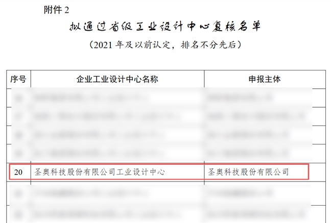 近日,浙江省经济和信息化厅正式公布 2025 年度省级工业设计中心认定和复核结果,圣奥科技工业设计中心凭借扎实的创新功底、完善的体系建设及突出的行业贡献,成功通过复核,继续保留省级工业设计中心资质,彰显了企业在工业设计领域的持续竞争力。