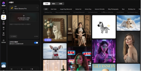 imini(imini.com)聚合了全网出色的生图和视频模型,这里已经第一时间接入NanoBanana Pro,每天提供免费的使用次数,并且对网络没有要求,打开即可使用。
