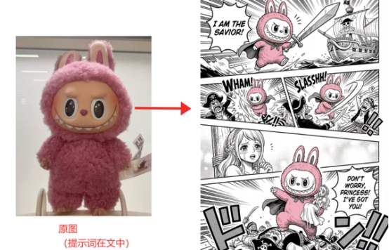 指令:把这个图片里的人物保持原来的形象,并且按照海贼王的漫画风格画一个拯救公主的连环画。