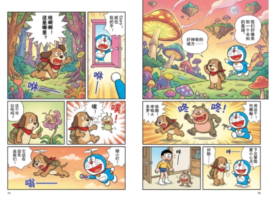 指令:生成像彩色《哆啦A梦》那种专业分镜结构、漫画叙事节奏、对白气泡、拟声词、画格布局、视角变化、动态镜头,但主角换成 Doro和哆啦A梦的冒险故事,中文对白。