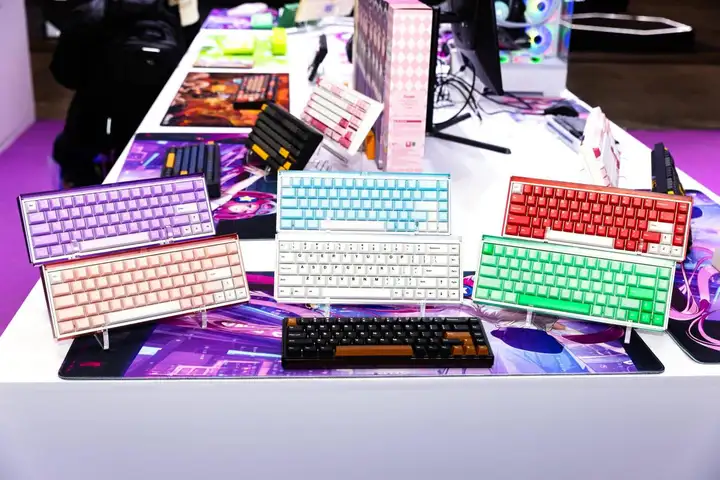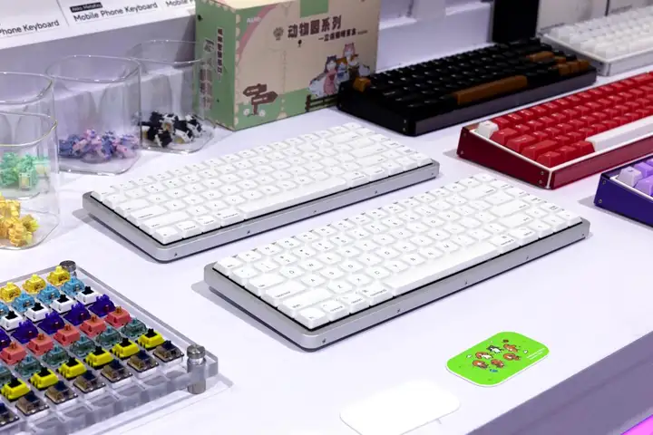展会现场,除旗舰级产品外,磁轴双雄——5075V3 HE与5087V3 HE键盘也深受玩家喜爱,还有Metakey手机键盘壳,以及RAY68双灯箱磁轴键盘、Air01矮轴键盘吸引无数中外玩家与爱好者驻足体验。