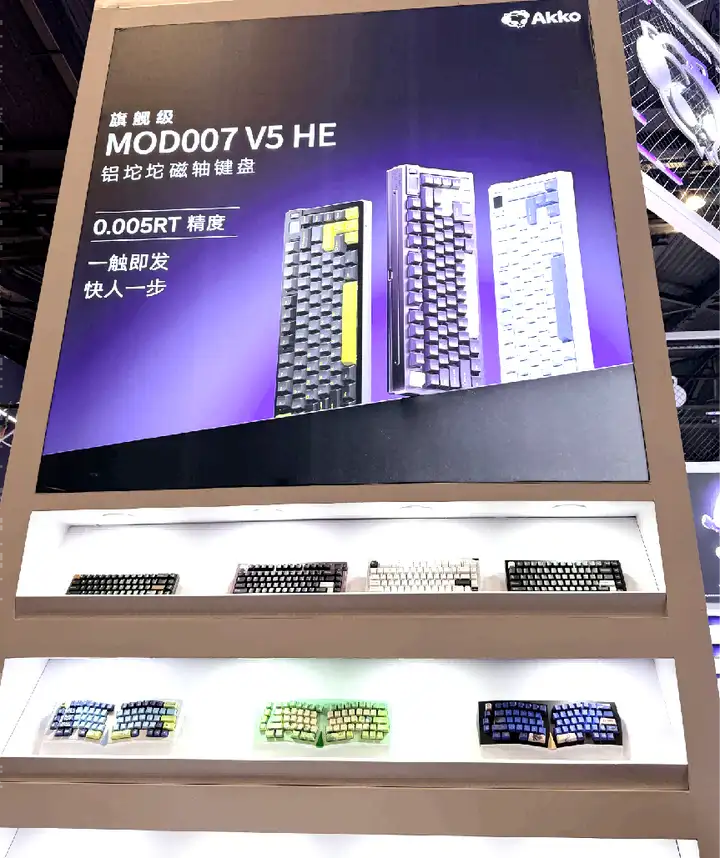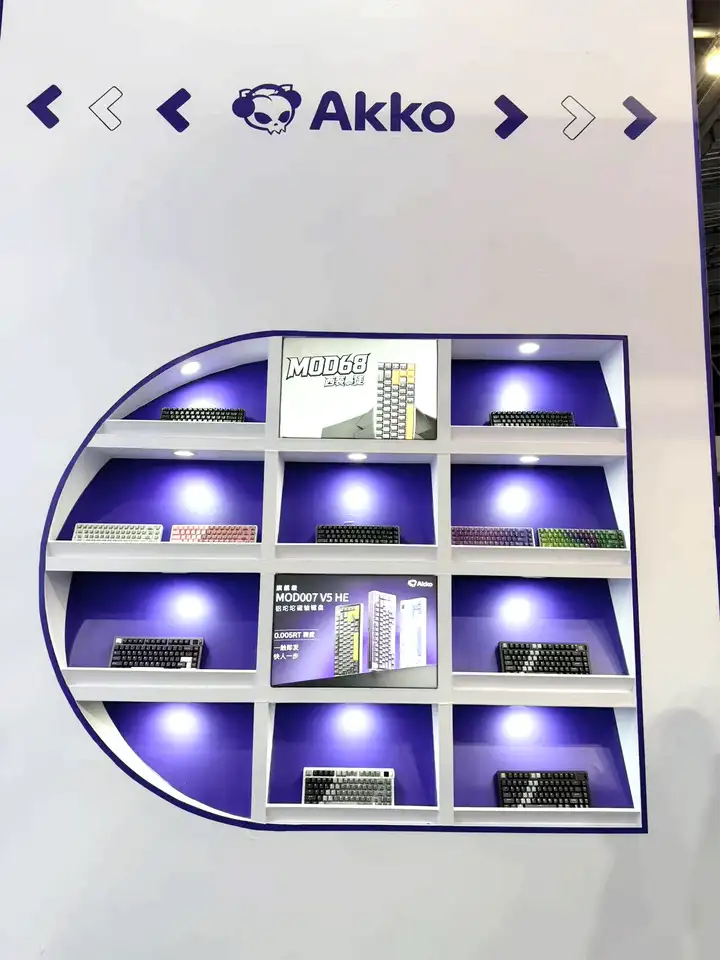 作为聚焦Z世代需求的科技潮牌,Akko此次参展以“硬核性能·潮玩出圈”为主题,将专业电竞技术与潮流文化深度融合。此次展会Akko带来了MOD68与MOD007V5 HE两款旗舰级Gasket铝坨坨磁轴键盘,以旗舰级配置加潮玩外观征服了现场大量观众,成为客制化玩家的关注焦点。